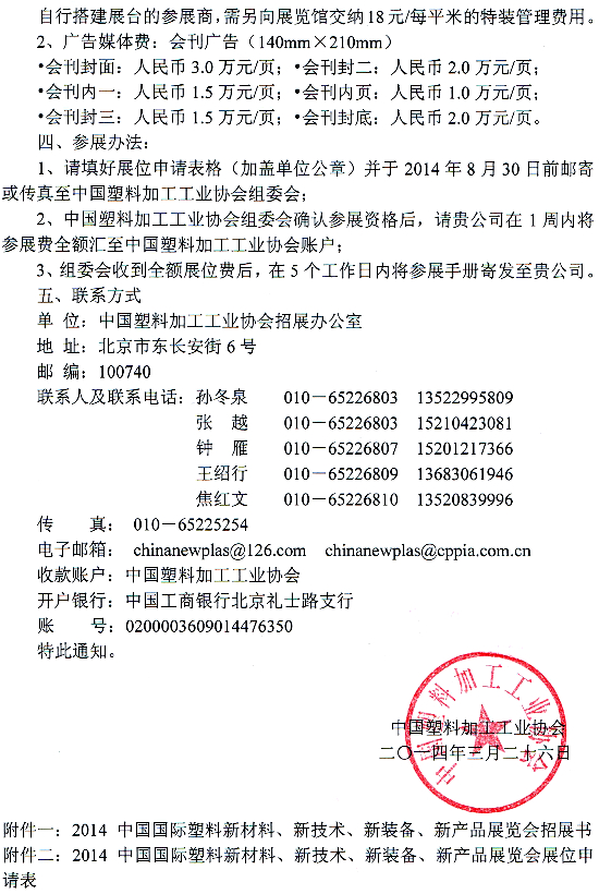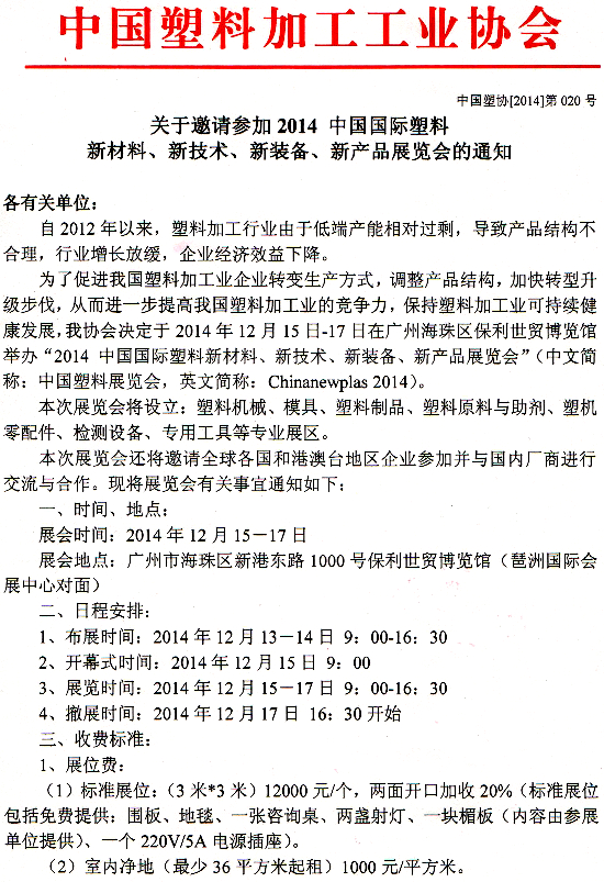附件一:2014 中国国际塑料新材料、新技术、新装备、新产品展览会 招展书